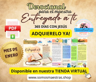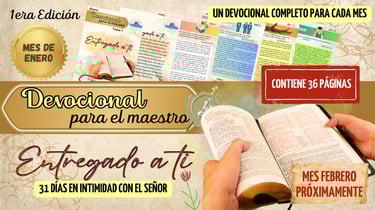 Es un devocional para los 365 días del año, en donde el maestro podrá reflexionar sobre su vida espiritual ,emocional y ministerial, a través de las escrituras, recordando que, como maestro cristiano, mi labor es mucho más que solo impartir conocimientos, es una oportunidad para sembrar las semillas de la Fe en el corazón de mis estudiantes. Por eso, es indispensable el desarrollo y crecimiento espiritual en Cristo, a través de este tomo compartiremos contigo algunas reflexiones profundas que nos ha inspirado en Nuestro camino a educar desde la fe.