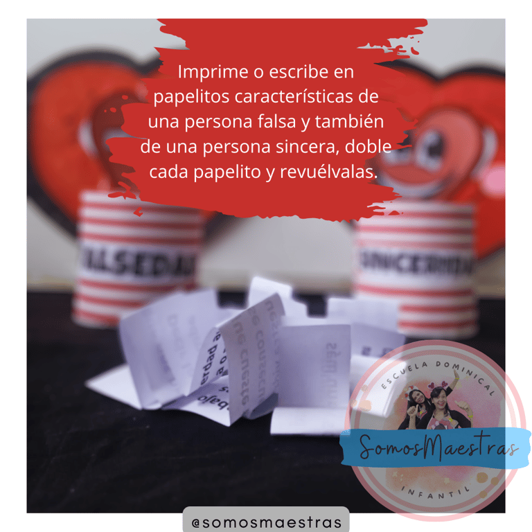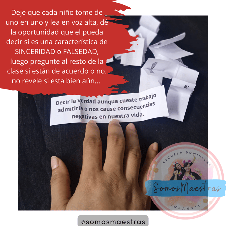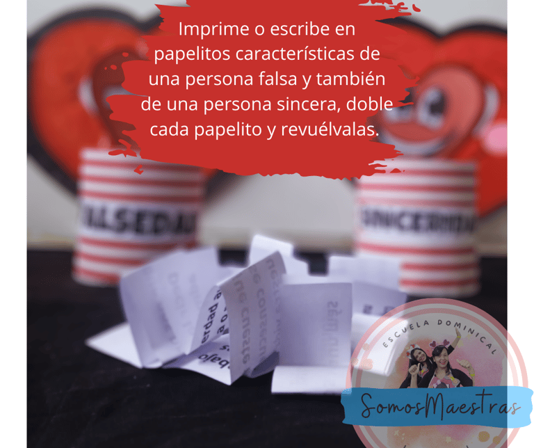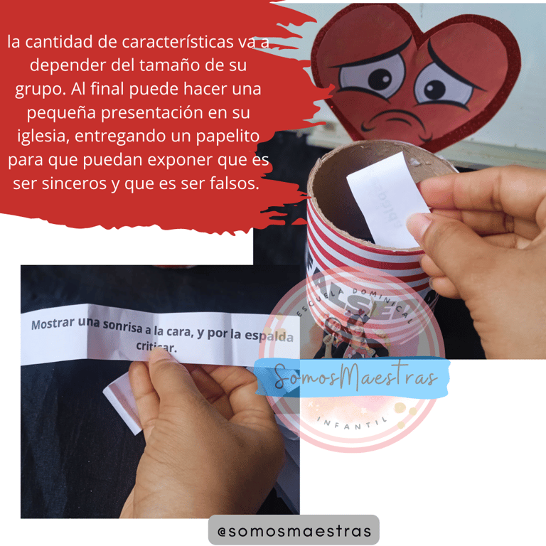 Una idea con características de una persona falsa y una persona sincera para reforzar el tema, ayudando al niño con ejemplos a comprender con más claridad.