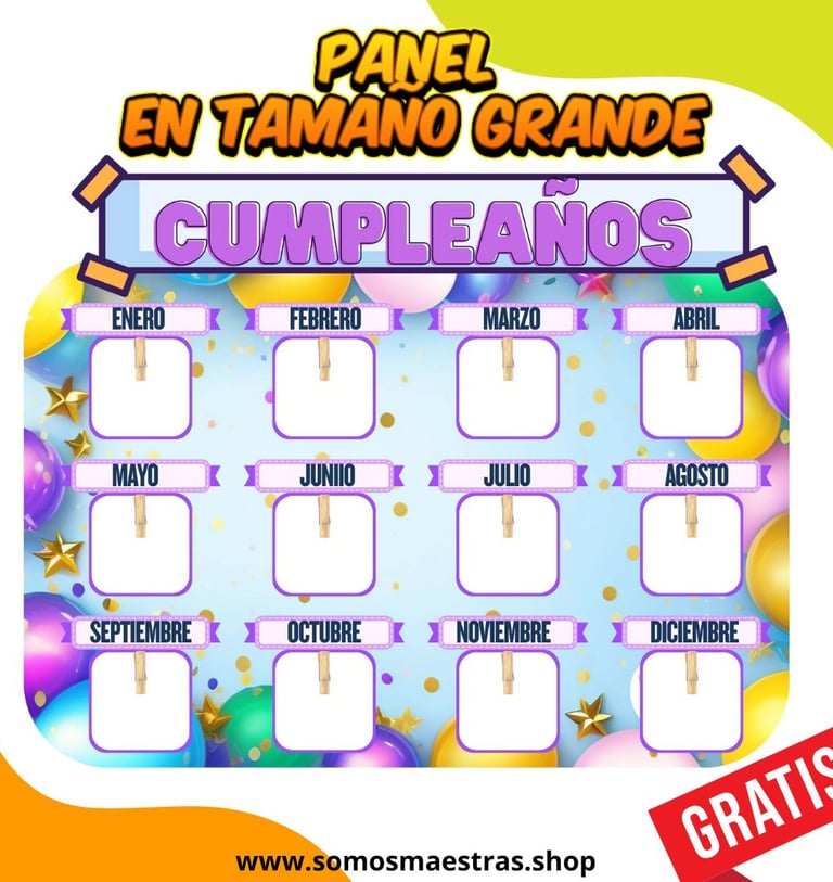 Organiza tu salón de clases con este hermoso panel de cumpleaños en tamaño grande, totalmente gratis.