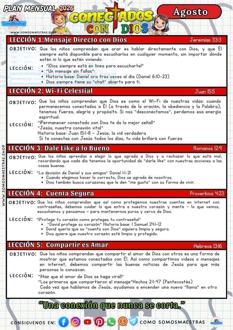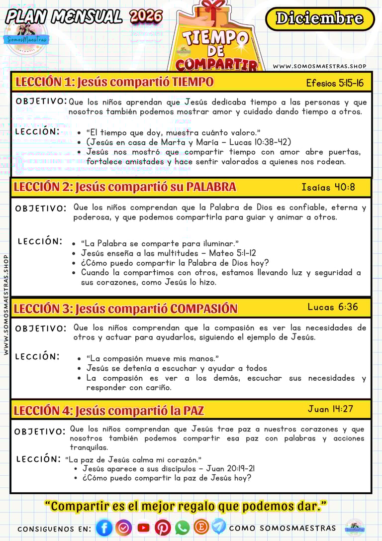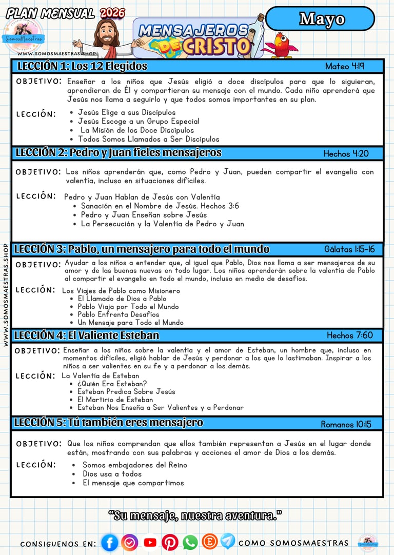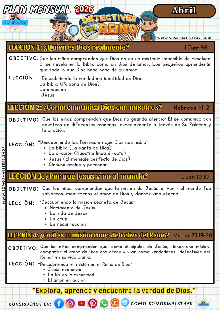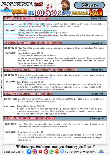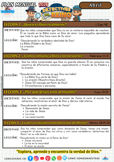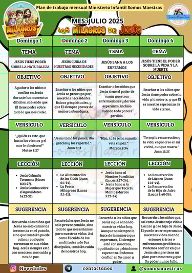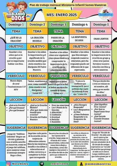 PLANIFICACIONES MENSUALES PARA EL MINISTERIO DE NIÑOS