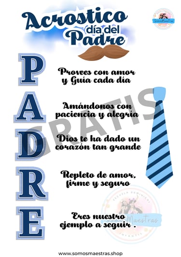Un hermoso acrostico con moldes para descargar para recitar a papá en su día